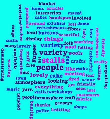 Around 300 people came and gave us some great feedback, as you can see from this word picture. They said they particularly enjoyed the variety of stalls, the demonstrations, the relaxing piano music and the cake!